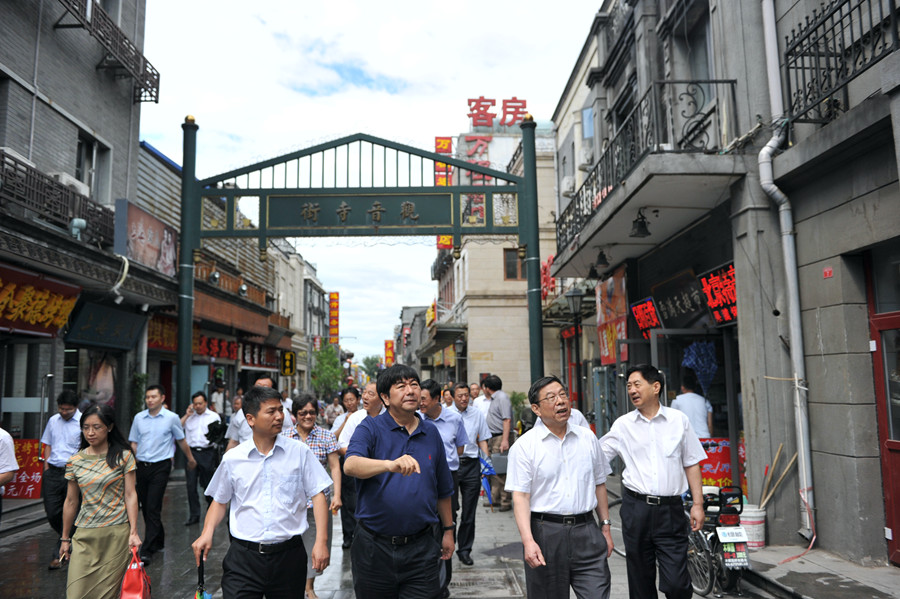 市人大常委會歷史文化名城保護(hù)條例執(zhí)法檢查組到大柵欄楊梅竹斜街視察
