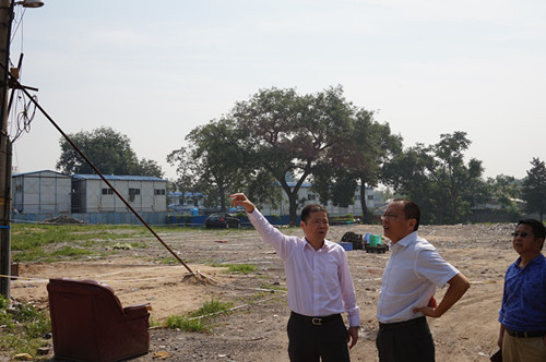 2015年9月14號,北京市國土資源局西城分局局長李偉、副局長黃東華、土地整理儲備中心主任王東等領導到大柵欄C3、H地塊及糧十旅館修繕現場調研指導工作。