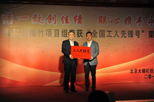 2016年10月20日,北京大柵欄投資有限責(zé)任公司楊梅竹項(xiàng)目組榮獲中華全國(guó)總工會(huì)頒發(fā)的“全國(guó)工人先鋒號(hào)”榮譽(yù)稱號(hào)的全員會(huì)議成功舉行。北京廣安控股有限公司領(lǐng)導(dǎo)班子以及北京大柵欄投資有限責(zé)任公司及下屬子公司全體員工參加了會(huì)議。