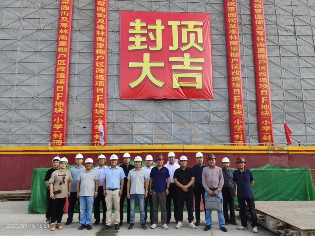 2023年7月13日,經(jīng)廣安集團(tuán)黨委批準(zhǔn),菜園街項(xiàng)目成立了“菜園街棚改項(xiàng)目臨時(shí)黨支部”,臨時(shí)黨支部成立了“青年突擊隊(duì)”,圍繞菜園街項(xiàng)目中心工作充分發(fā)揮戰(zhàn)斗堡壘和先鋒模范作用,為推動(dòng)項(xiàng)目建設(shè)提速增效凝聚起了強(qiáng)大合力。同時(shí),為積極落實(shí)西城區(qū)學(xué)位保障專班工作要求,在西城區(qū)各委辦局的指導(dǎo)下,廣安融盛公司成立了F地塊專項(xiàng)協(xié)調(diào)小組,廣安融盛公司總經(jīng)理?yè)?dān)任組長(zhǎng),施工單位、監(jiān)理單位領(lǐng)導(dǎo)現(xiàn)場(chǎng)辦公,協(xié)調(diào)解決現(xiàn)場(chǎng)疑難問(wèn)題,為項(xiàng)目快速推進(jìn)提供了重大保障。結(jié)構(gòu)封頂這一階段性成果,離不開(kāi)各參建單位的辛勤付出、精誠(chéng)配合以及各級(jí)領(lǐng)導(dǎo)的大力支持與幫助。至此,第一階段施工任務(wù)圓滿完成,為下一階段施工打下了良好的基礎(chǔ),也為項(xiàng)目按時(shí)竣工提供了有力保障。