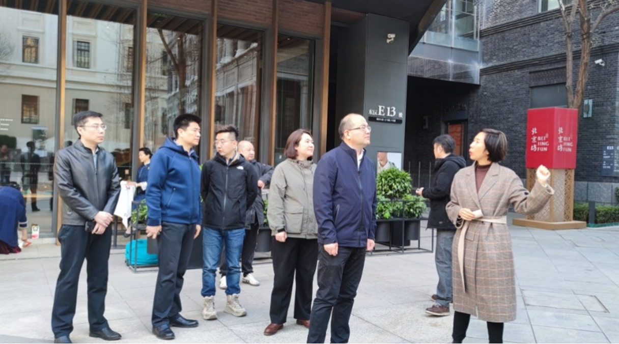張曉家一行先后前往PageOne書店、WeWrok共享辦公、中服免稅店、勸業(yè)場等文化產業(yè)商家、文化活動場地進行走訪,實地了解北京坊文化產業(yè)運營、文化活動落地、文創(chuàng)商品市場反饋等情況,對北京坊通過高效復合利用空間,創(chuàng)新文化消費場景,孵化文化消費品牌,策劃文化消費活動,打造極具特色的“北京文化新地標”和“中國式的生活體驗區(qū)”給予了充分肯定,提出北京坊要繼續(xù)打造共建共享城市文化會客廳,奮力譜寫中國式現代化西城實踐文化強區(qū)新篇章。