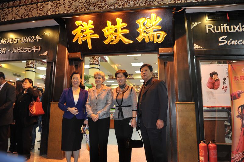 伊琳娜·博科娃參觀了楊梅竹斜街,對大柵欄更新計劃這一模式給予了充分肯定。隨后,伊琳娜·博科娃游覽了大柵欄商業(yè)街,她高度評價了古老而繁華的街區(qū)、老字號的精良工藝,并進入內聯升和瑞蚨祥參觀。