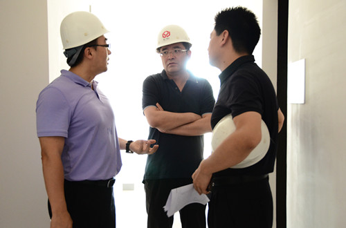 張總一行9人在燕廣公司副總經(jīng)理孫樹、工程總監(jiān)李強(qiáng)、工程管理部經(jīng)理張式鵬等人的陪同下,參觀了南苑項(xiàng)目的樣板間并就交房的標(biāo)準(zhǔn)進(jìn)行了詳細(xì)的詢問。隨后,副總孫樹向控股領(lǐng)導(dǎo)匯報(bào)了南苑項(xiàng)目的工程進(jìn)展情況;同時(shí),銷售部副經(jīng)理李潔介紹了現(xiàn)階段項(xiàng)目的市場定價(jià)相關(guān)情況。