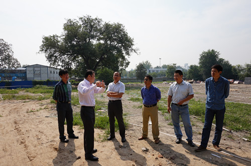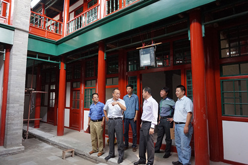 2015年9月14號,北京市國土資源局西城分局局長李偉、副局長黃東華、土地整理儲備中心主任王東等領導到大柵欄C3、H地塊及糧十旅館修繕現場調研指導工作。
